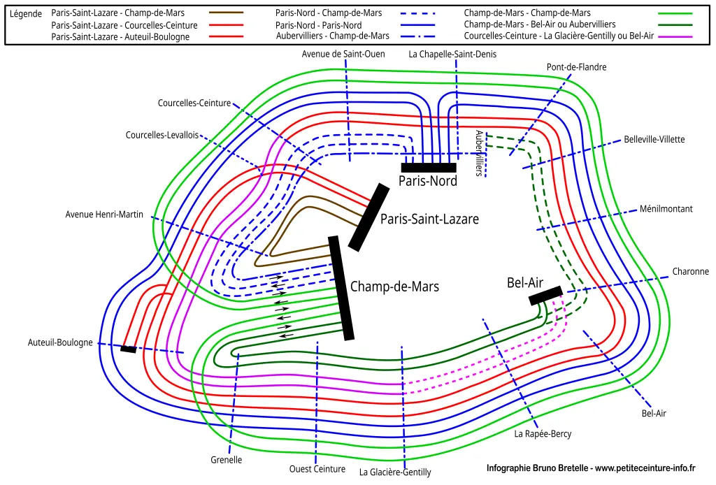 [9] Conseil Municipal de Paris, Commission du Métropolitain, Note documentaire relative à l’extension du réseau métropolitain de Paris, Annexe n°7, Rapport de l’inspecteur général adjoint du Métropolitain et du Port de Paris relatif à l’incorporation au réseau des transports parisiens de la voie ferrée de Petite-Ceinture. 1er janvier 1923.