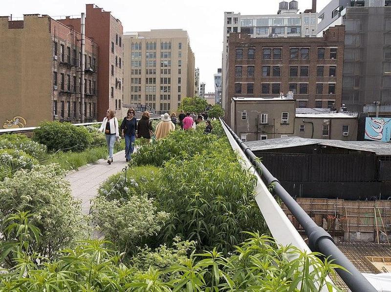 Dès l’ouverture de la promenade réversible du 15e en 2013, la Mairie de Paris évoque l’inspiration de la High Line new-yorkaise pour aménager la Petite Ceinture.