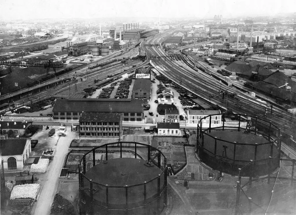 Vue aérienne des installations de la station Est-Ceinture en 1929