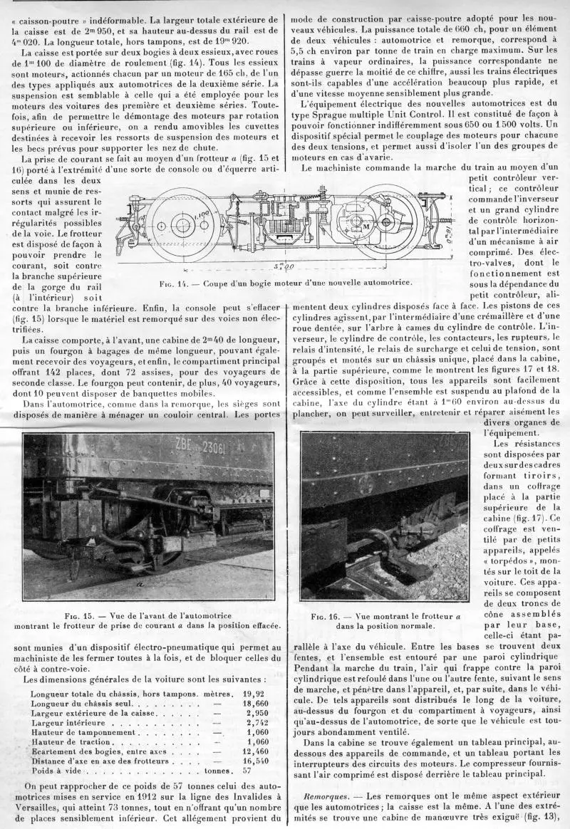 L’électrification des lignes de banlieue des Chemins de fer de l’État - article du Génie Civil - page 250.Description des remorques.
