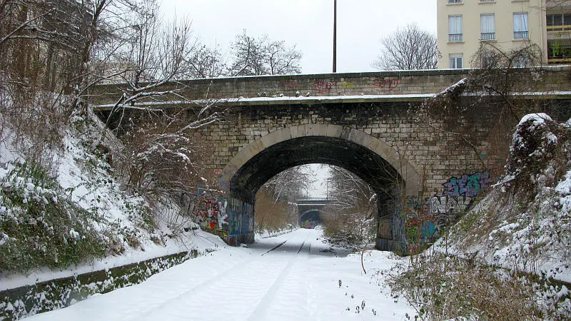 Tranchée de la Petite Ceinture entre les portes d’Orléans et de Vanves (14e arrondissement) - vue vers l’Ouest.