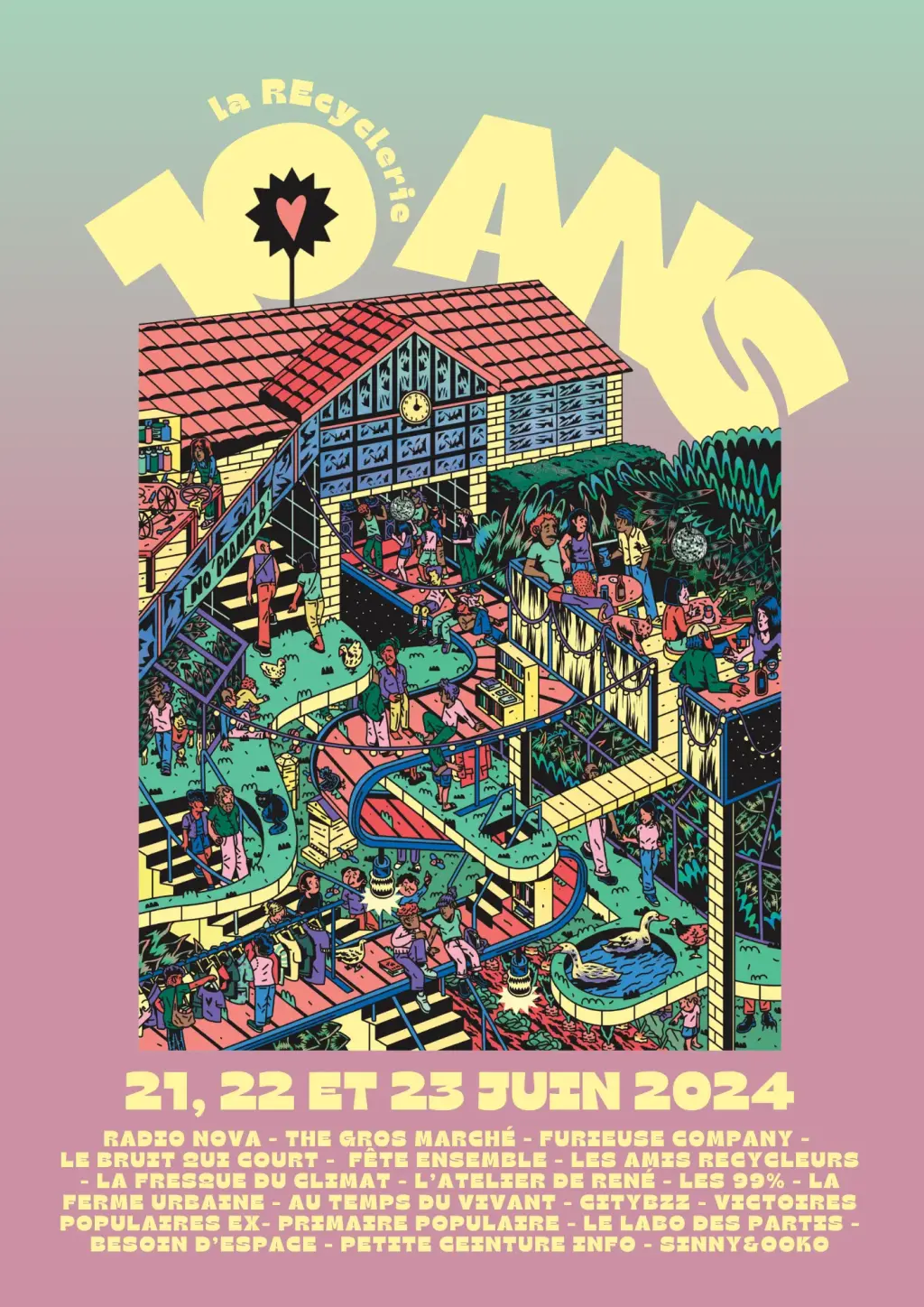 Les 21, 22 et 23 juin 2024, la REcyclerie vous ouvre ses portes et met à disposition tous ses recoins, des hauteurs de son toit jusqu’au fond de sa Ferme Urbaine, pour vous surprendre avec une programmation XXL et vous remercier des moments inoubliables qui se sont passés dans son ancienne gare, depuis 10 ans !